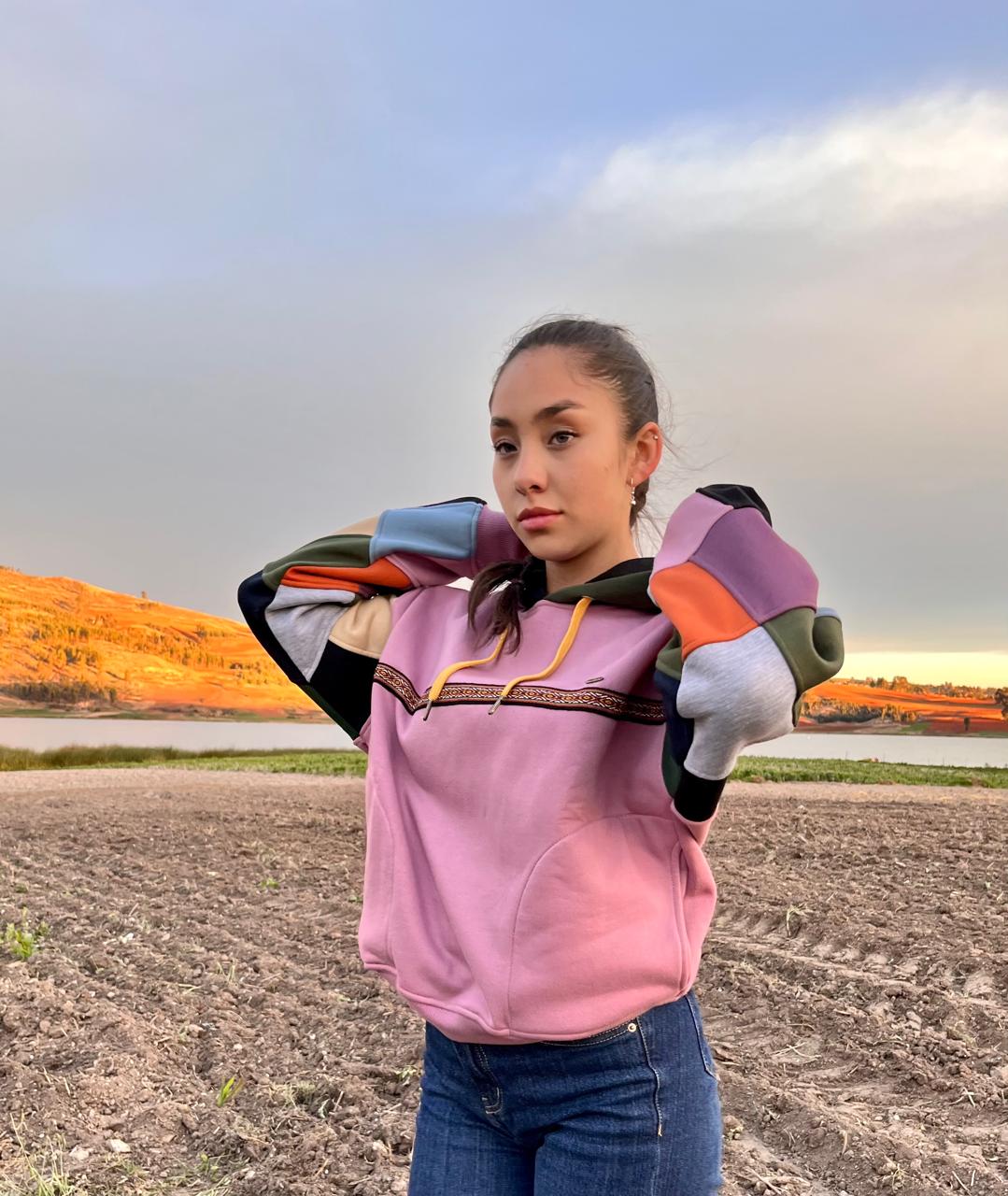 DETAILS: Made of cotton material, it has a handmade headband on the chest, it has the patchwork technique on the sleeves and hood, colors that are inspired by our Cusco flag (Tahuantinsuyo).