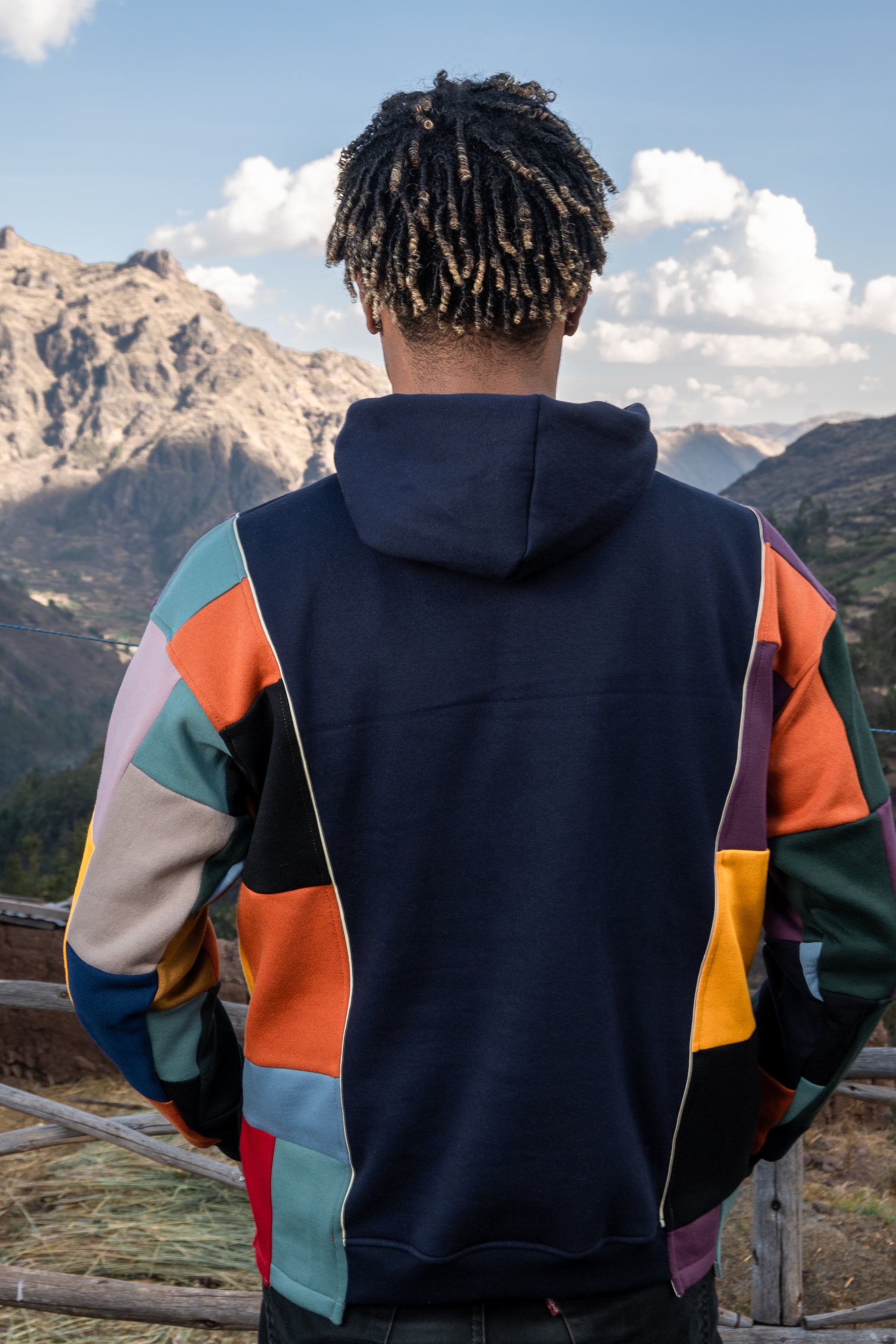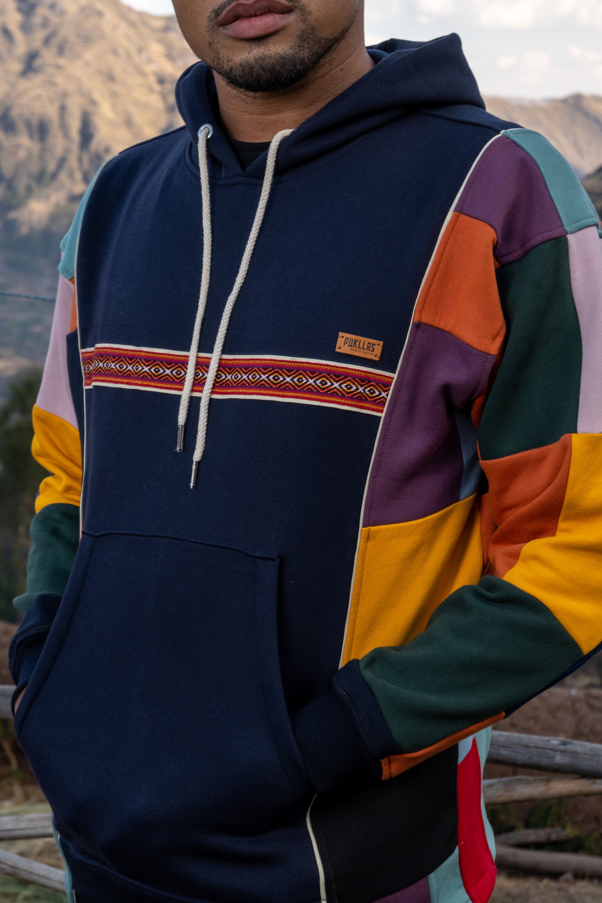 DETALLES: Hecho en material Algodón, lleva cintillo artesanal en el pecho y sesgos para resaltar los colores que acompañan esta, la técnica patchwoork en mangas y capucha colores que están inspirados en nuestra bandera de Cusco(Tahuantinsuyo).modelo urbano.
